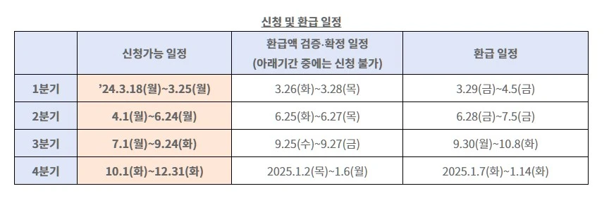 24년 1월에 원금상환을 완료한 차주는 24년 1월까지의 납입이자에 대한 환급액을 3.29~4.5일 중 수령할 수 있고, 23년 5월에 3년 계약을 체결한 차주는 24년 5월까지의 납입이자에 대한 환급액을 6.28~7.5일 중 수령하게 됩니다.