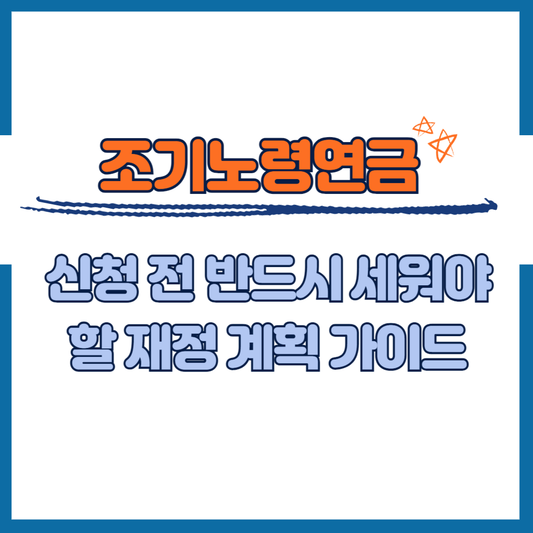 조기노령연금을 신청하기 전에는 긴 안목으로 재정 계획을 세워야 합니다. 이 가이드는 연금 수령 후 생활비, 건강 관리 비용, 여가 활동 비용 등을 포함한 종합적인 재정 계획을 세우는 데 도움을 줄 것입니다.