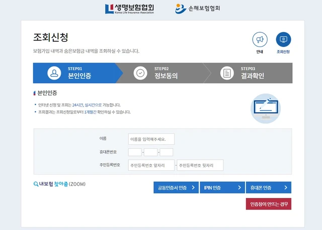 공식 사이트 방문, 본인인증 및 약관 동의 후 최근 5년간의 보험 가입 및 미수령 내역을 꼭 확인해보시기 바랍니다. 번거롭지만 우리 권리를 지키기 위한 필수 절차라는 점 잊지 마세요.