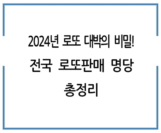 2024년 로또 당첨의 열쇠, 전국 로또판매 명당을 공개합니다! 서울부터 제주까지, 지역별 행운의 판매점과 그 비밀을 파헤쳐 보세요. 로또 구매 전 필독!