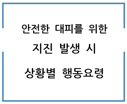평소 지진 발생에 대비하여 상황별 대처법을 숙지하는 것이 중요합니다. 가족과 함께 주기적으로 훈련하고 비상 배낭도 준비해야 합니다. 작은 주의력으로 가족의 생명을 지킬 수 있습니다.