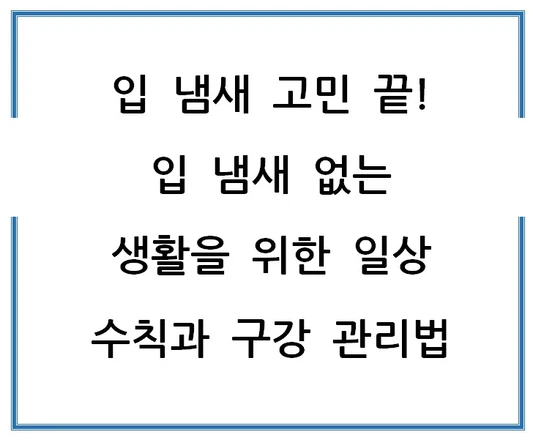 입 냄새 없는 상쾌한 구강 관리를 위해 가정에서 실천할 수 있는 구체적인 방법들이 있습니다.