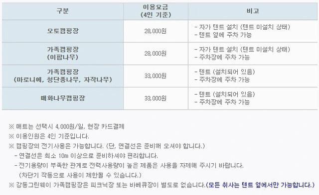 - 오토캠핑장: 28,000원