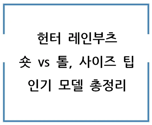 헌터 레인부츠의 숏과 톨 모델의 장단점, 사이즈 선택 팁, 인기 모델을 상세히 비교 분석했습니다. 장마철 필수품 레인부츠, 현명하게 고르는 방법을 알아보세요.