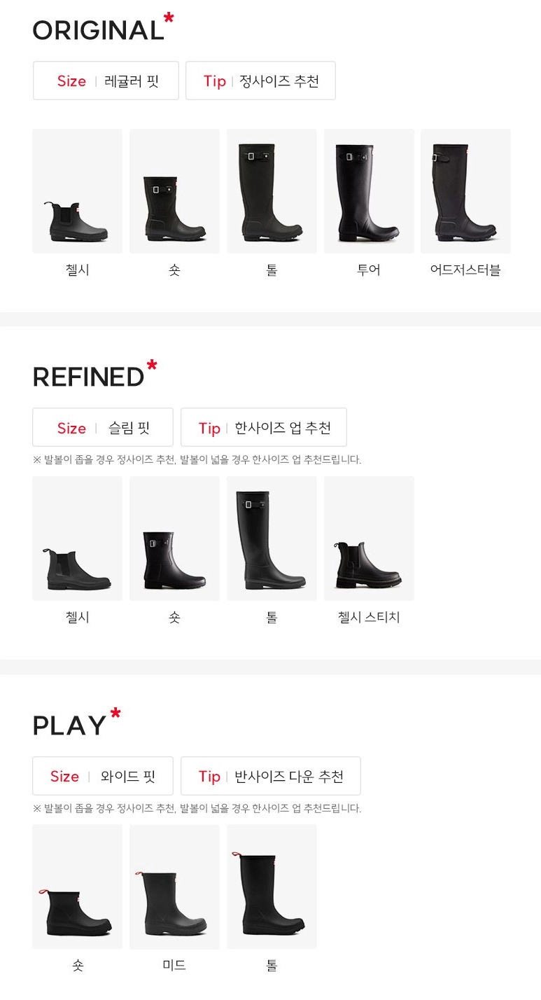 헌터 공식 사이트에서 제공하는 사이즈 가이드를 참고하면 더욱 정확한 선택이 가능합니다.