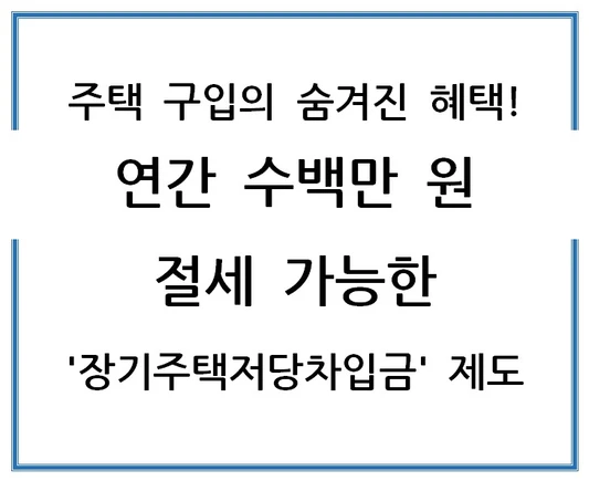 주택을 구입하면 대출이자, 관리비 등 지출이 늘어나는 것은 사실입니다. 하지만 알고 보면 매년 수백만 원의 세금 혜택을 받을 수 있는 숨겨진 제도가 있습니다. 바로 '장기주택저당차입금' 제도인데요. 이 글에서는 이 제도에 대해 자세히 알아보고, 어떻게 하면 최대한의 혜택을 받을 수 있는지 살펴보겠습니다.