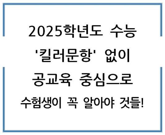 한국교육과정평가원은 2025학년도 수능에서 '킬러문항'을 철저히 배제하겠다고 발표했습니다. 이는 사교육 의존도를 낮추고 공교육을 정상화하려는 정부의 의지를 반영한 것으로 볼 수 있습니다.