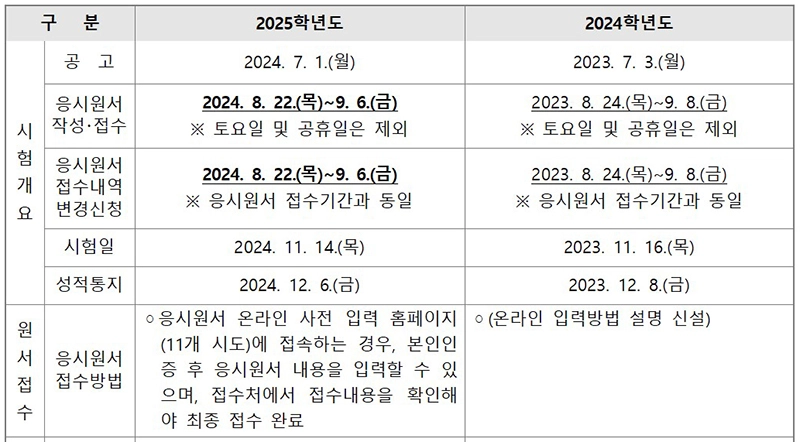 - 응시원서 접수기간: 8월 22일 ~ 9월 6일 (12일간)