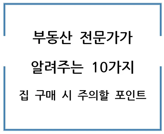부동산 투자는 많은 사람들에게 큰 관심사입니다. 그러나 잘못된 선택은 막대한 경제적 손실로 이어질 수 있습니다. 이에 부동산 전문가들이 제시하는 10가지 집 구매 시 주의할 포인트를 상세히 살펴보겠습니다.