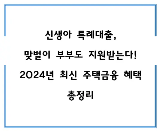 2024년 신생아 특례대출은 맞벌이 부부에게 새로운 기회를 제공합니다. 정확한 정보 수집과 전략적 접근이 성공적인 대출의 핵심입니다.